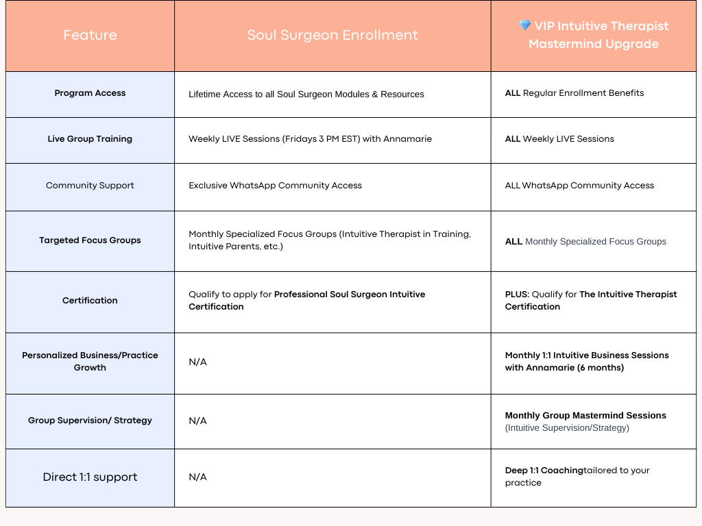 This isn't just an expense; it's a strategic investment in your personal power, your professional impact, and the long-term sustainability and unparalleled profitability of your practice. In an uncertain world, becoming an Intuitive Soul Surgeon isn't just valuable—it's how you recession-proof your expertise and ensure you remain a highly sought-after, indispensable professional.
